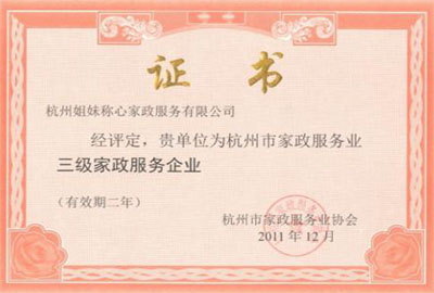 2011年榮獲三級家政服務企業(yè)